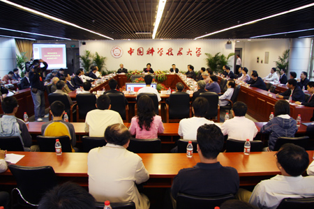 9月25日,中共中央总书记、国家主席、中央军委主席胡锦涛发来贺信,向中国科学技术大学全体师生员工和海内外校友祝贺建校50周年。9月27日上午,前来中国科大考察工作的中央政治局委员、国务委员刘延东亲自带来了这封贺信。中科院常务副院长白春礼在上午举行的师生座谈会上宣读了贺信。