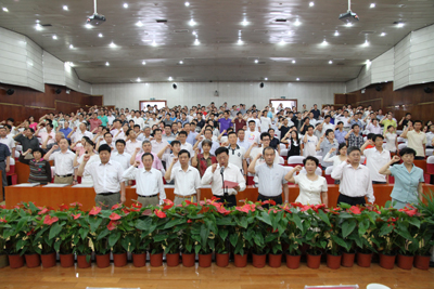 许武回顾了科大50多年不平凡的的发展历程,强调指出,正是由于有一大批爱国奉献、忠诚于党的教育事业的优秀共产党员,以及在普通岗位上勤勤恳恳、无私奉献广大教育工作者,科大才创造了不断的辉煌,成为我党亲手创办的最成功的大学。许武还介绍了自去年5月以来我校“创先争优”活动的进展情况和取得的成绩,并对全校各级党组织和广大党员出四点要求:一是牢记使命,努力创办人民满意的世界一流研究型大学;二是立足实际,踏踏实实做好本职工作,努力成为时代典范的共产党员;三是探索党建工作与教学、科研和育人工作的结合点,建设勤于学习、勇于实践、善于创新的党组织;四是团结师生,发挥好基层党组织的战斗堡垒作用。