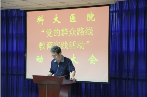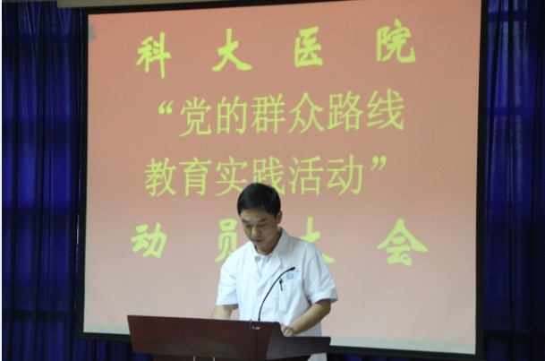 按照中央和校党委的统一部署,7月22日下午,医院在三楼会议中心召开开展党的群众路线教育实践活动动员大会,对我院开展党的群众路线教育实践活动进行部署。校第五督导组王泽普书记、校党政办郑红群老师等出席会议。院直属支委书记夏炳乐作动员报告,院支委委员、院长助理周鹏主持会议。全体院领导、党员、中层干部和部分职工代表参加了会议。