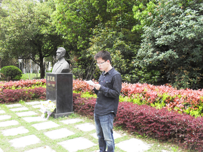 中午13:00,同志们静立在两位先生的塑像前,开始了庄严肃穆的纪念和宣誓活动。首先,系总支书记何卫东同志介绍郭永怀先生和杨承宗先生的生平事迹。郭永怀先生不仅仅是一位杰出的科学家,也是“两弹一星”的功勋和烈士,他的爱国热情、无私奉献的情操、坚定的信念是知识分子党员的表率。郭永怀先生“把力学理论和火热的改造客观世界的革命运动结合起来了”,钱学森先生的评价深深地触动了我们。杨承宗先生是我国放射化学奠基人、我校建校元勋,师从居里夫人的他于1951年秋回国,为我国的核化学、国防建设做出了卓越的贡献。百年的人生中,杨承宗先生无怨无悔,努力拼搏,辛勤耕耘,科学救国和强国,以中国科大为荣。随后,我们向两位先生进献了鲜花。