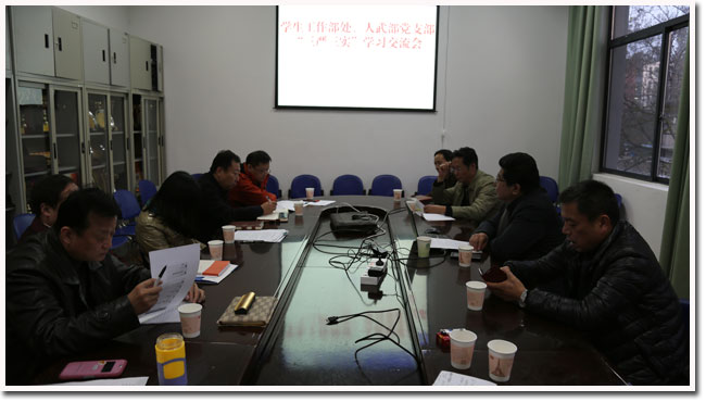 12月1日下午,学生工作部处、人武部党支部召开学习生活会,支部党员同志围绕“三严三实”主题,结合自身工作,畅谈体会。会议由学生工作部处、人武部党支部书记、学生工作部处长、党委人民武装部部长董雨主持。