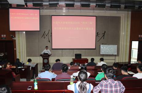 在专题党课之前,举行了管理学院“两学一做”学习教育再动员大会。会上,校党委委员、组织部部长何淳宽结合自己的认识和体会作了讲话。他在充分肯定管理学院以往党建工作的基础上,高度评价了管理学院“两学一做”学习教育实施方案和工作进展。他说,管理学院的党员比例高、组织纪律严,领导起到了带头示范作用,党建工作开展扎实有效,人才培养和学科建设取得了显著成绩。他希望管院全体党员通过扎实的“两学一做”学习教育,增强政治意识、大局意识、核心意识、看齐意识,深刻领会习近平总书记重要讲话精神,为科大创建世界一流大学和管理学院创建一流学科做出积极贡献。最后,他对管理学院“两学一做”学习教育实施方案的落实提出了期望,并预祝学习教育取得预期效果。