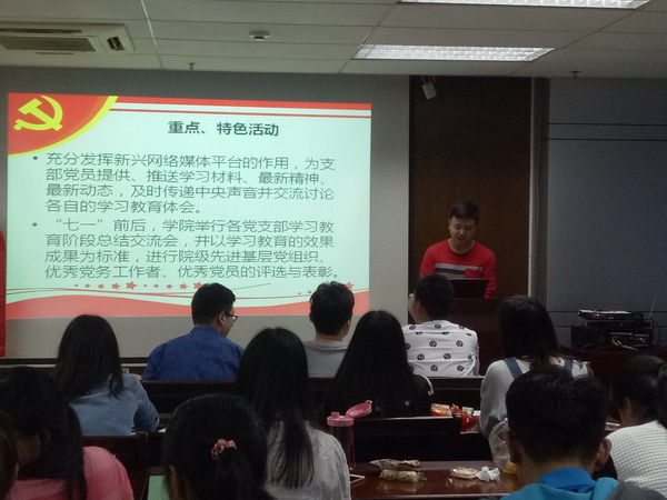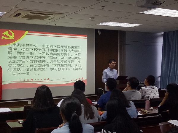 5月11日晚,管理学院2014级统计与金融系硕士班党支部、2015级管科物流硕士班党支部在教学行政楼702A706联合开展了“学习1+1”——践行“两学一做”主题党日活动。