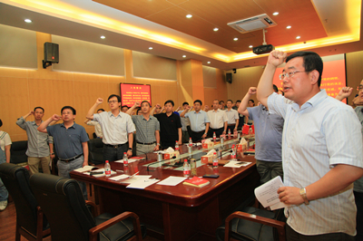 最后,全体党员面向党旗,重温入党誓言,庄严宣誓。