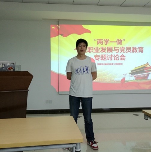刘道彬还带领全体支部党员开展“个人职业发展与党员教育”的专题讨论,结合了老一辈“两弹一星”元勋等老科学家的事迹,从自身进入科研领域的经历表达了对老科学家的敬佩之情以及自己对科研工作的态度和追求。其他同学也踊跃发言,结合自身情况谈到了自己之前对科研的畏难情绪和应付心理,激励大家应以饱满的热情和坚定的信心从事科研乃至所有遇到的问题。
