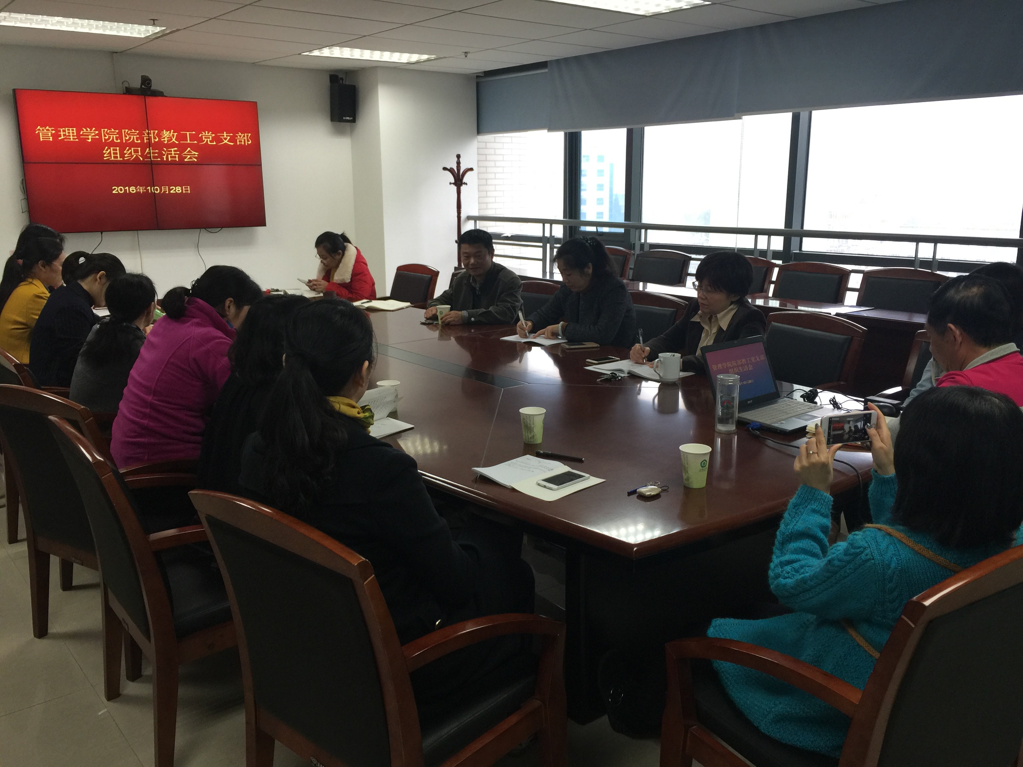 院部教工党支部书记刘璐代表支部班子对前期支部“两学一做”学习教育和党建工作做了阶段总结汇报,并与支部班子成员对照职能职责,依次认真剖析了各自在思想、组织、作风、纪律等方面存在的问题,支部党员根据实际情况对支部班子进行了评议,对支部取得成绩和支部班子的工作给予了肯定,同时对支部班子在工作、作风等存在的问题提出了批评和建议。