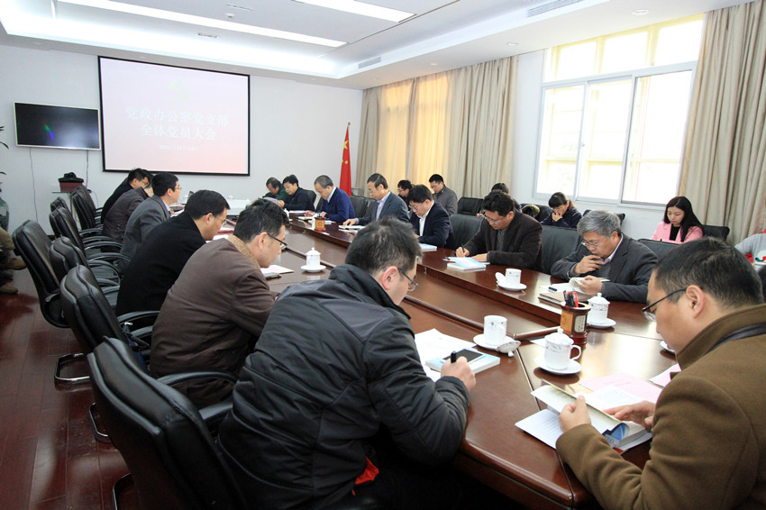11月24日上午,党政办公室党支部召开全体党员大会,开展“两学一做”学习教育专题学习讨论,深入学习贯彻党的十八届六中全会和习近平总书记系列重要讲话精神。党组织关系在党政办党支部的校领导许武、万立骏、窦贤康、陈晓剑、周先意、朱长飞、蒋一,以普通党员身份参加支部学习并参与讨论交流。会议由支部书记、党政办主任刘天卓主持。