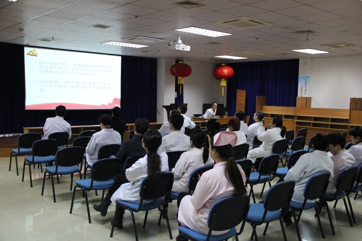 2016年12月1日下午,按照医院“两学一做”学习教育实施方案的计划,我院在三楼多功能厅开展了题为“习近平总书记系列重要讲话——全面从严治党的思想”的专题学习讲座。医院全体党员、入党积极分子、院中层以上干部参加了专题学习。会议由院直属支部书记夏炳乐主持。