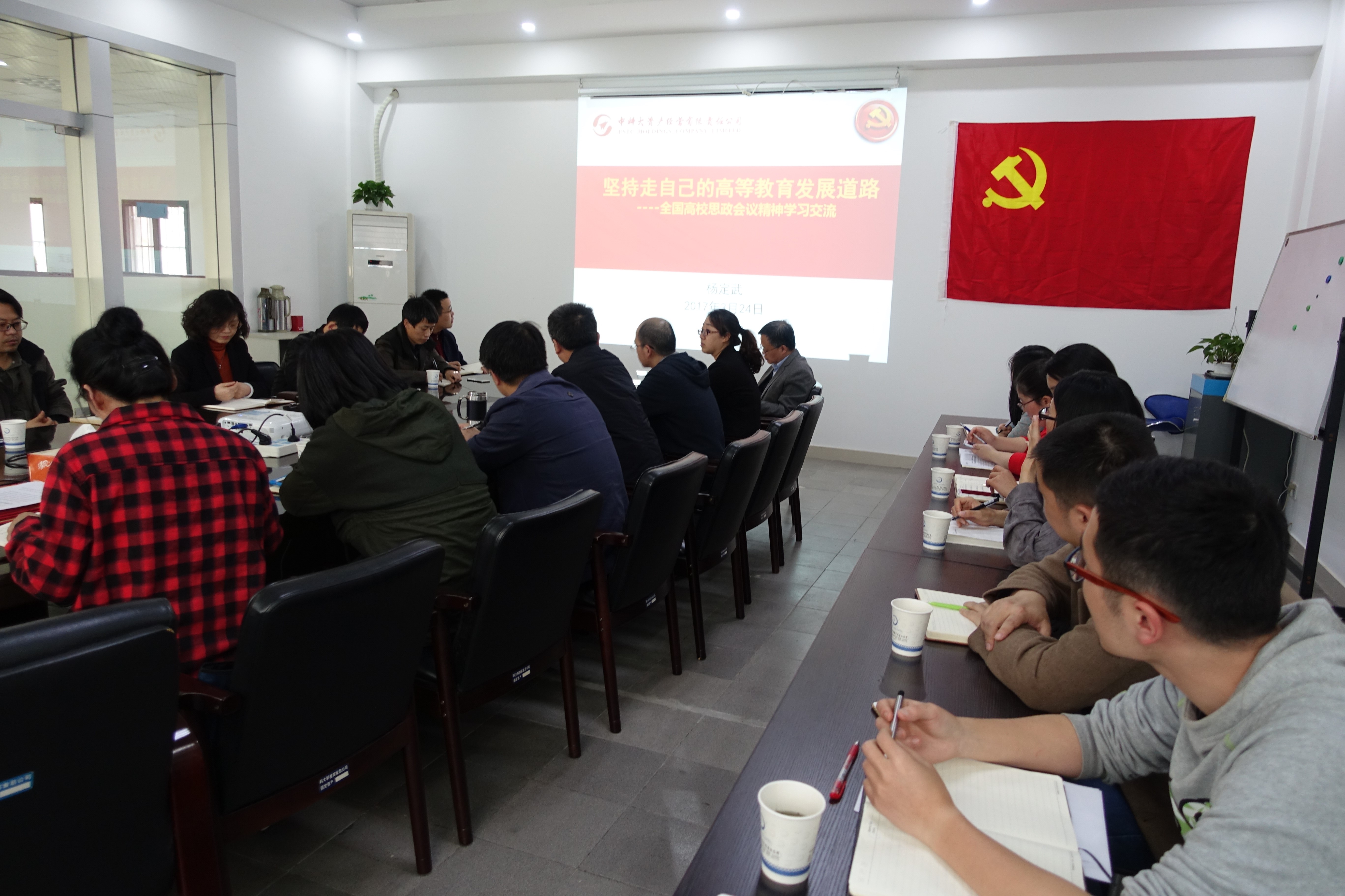 总支书记杨定武以《坚持走自己的高等教育发展道路——全国高校思政会议精神学习交流》为标题,带领大家学习习近平总书记在全国高校思想政治工作会议精神。