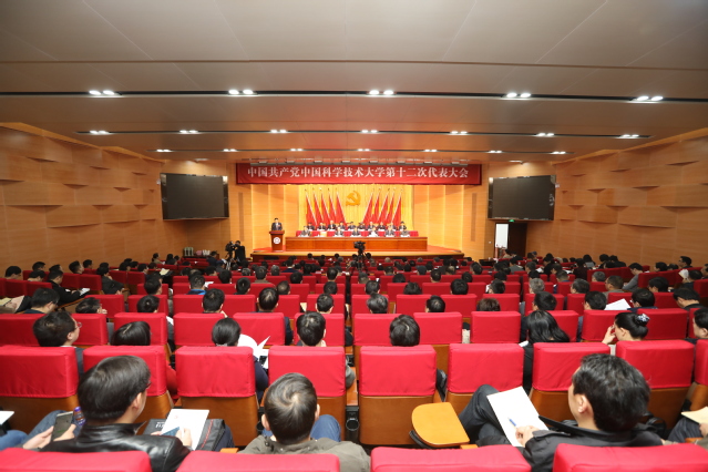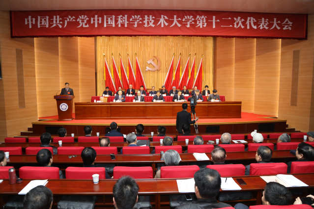 三月阳春,万物勃发。水上报告厅气氛庄重热烈,大会主席台正上方悬挂着“中国共产党中国科学技术大学第十二次代表大会”会标,主席台帷幕正中的中国共产党党徽在鲜艳的红旗映衬下熠熠生辉。