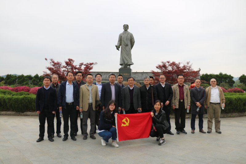 研讨会结束后,学院分党委前往旌德县健康制造产业发展集聚基地参观了相关的重点实验室和研发中心,以及国家红色经典旅游景区江村,重温了革命烈士江上青的生平及英勇事迹,并在江上青烈士的雕像前合影留念。