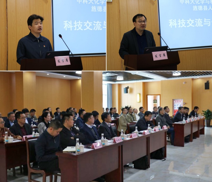 傅尧代表学校对旌德县领导的关心、支持和企业家、专家的莅临表示感谢,他表示自己先后七次到过旌德县,见证了旌德的高质量发展历程。旌德县近年来加快创新机制建设,创建了中科大生物质洁净能源实验室和中科院微生物研究所灵芝工程技术研究中心等创新平台,不断引进高端人才,发展新兴战略产业,打造健康智造产业发展基地,成效斐然。中国科大是安徽的一张名片,学校积极响应党和国家号召,服务安徽、服务地方,在各县市建立成果转化基地,共谋发展,化学与材料科学学院也十分重视成果转化和社会服务方面的工作,希望借此机会使旌德县成为化学院的成果转化基地,让更多化学院师生到旌德发展。