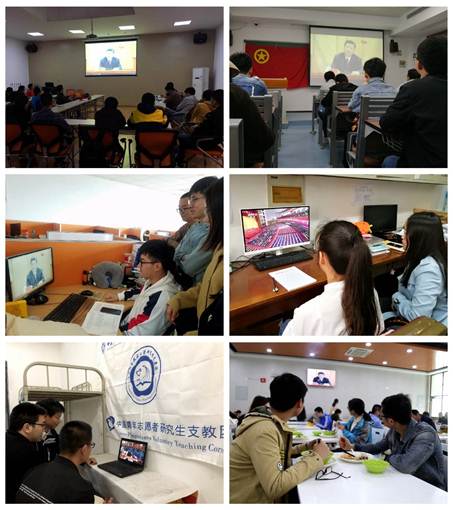 各院系、班级团支部、学生社团和广大青年师生自发在会议室、教室、实验室、学生宿舍、食堂等地,通过电视、网络、广播等多种方式收听收看纪念大会,认真学习领会大会精神。