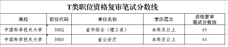 T类职位资格复审笔试分数线