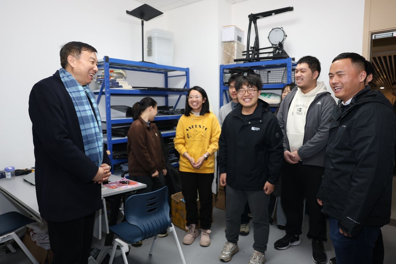 12月23日,校党委书记舒歌群在高新校区调研并宣讲党的二十届四中全会精神。高新园区建设与管理委员会办公室、保卫与校园管理处、图书馆、学生工作处、团委及人形机器人研究院的相关负责人陪同调研。