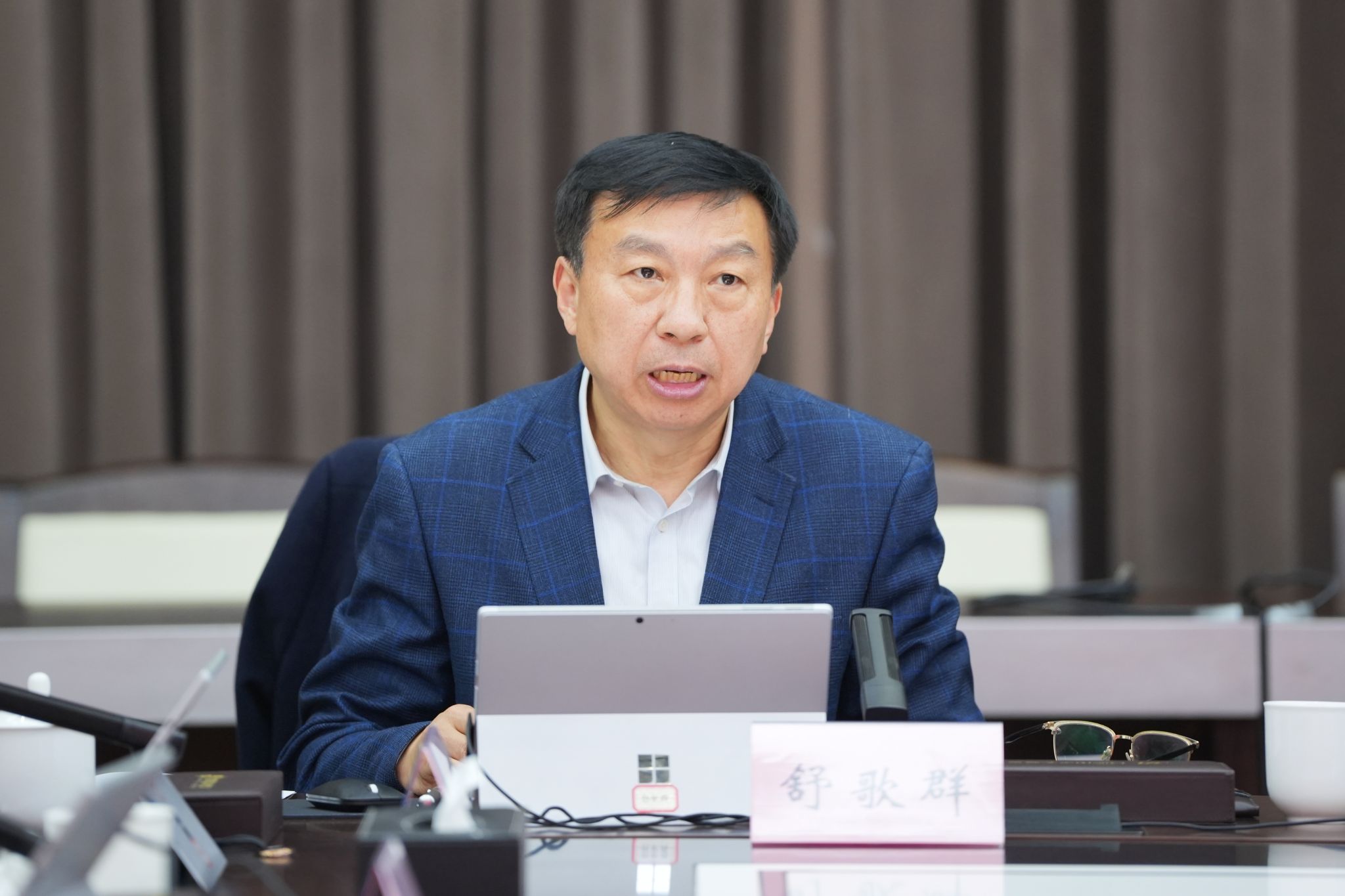 舒歌群指出,党的十八大以来,习近平总书记高度重视政绩观问题,围绕“政绩为谁而树、树什么样的政绩、靠什么树政绩”等作出一系列重要论述,近期又在多次重要讲话中特别加以强调,确定学习教育主题,为开展学习教育提供了根本遵循和行动指南。我们要认真学习领会习近平总书记关于树立和践行正确政绩观的重要论述,从拥护“两个确立”、做到“两个维护”的政治高度,把思想和行动统一到党中央决策部署上来,切实增强开展好学习教育的思想自觉和行动自觉。