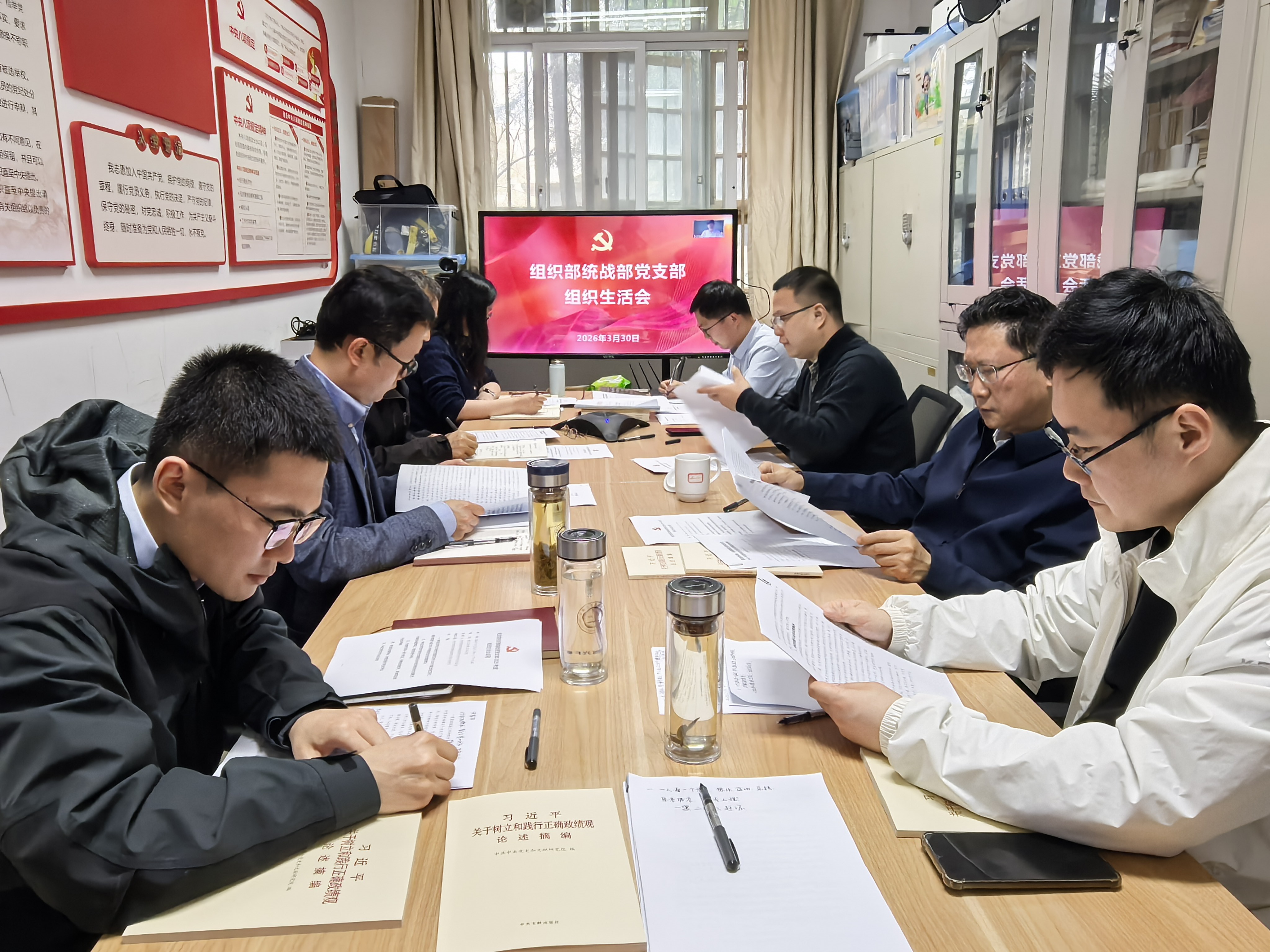 根据校党委工作部署,3月30日下午,组织部统战部党支部在东区218楼112会议室召开2025年度组织生活会,并开展民主评议党员工作。校党委常务副书记蒋一以普通党员身份参加会议,与支部党员一起交流思想、开展批评、推动工作。校党委常委、党委组织部部长、组织部统战部党支部书记申成龙主持会议。